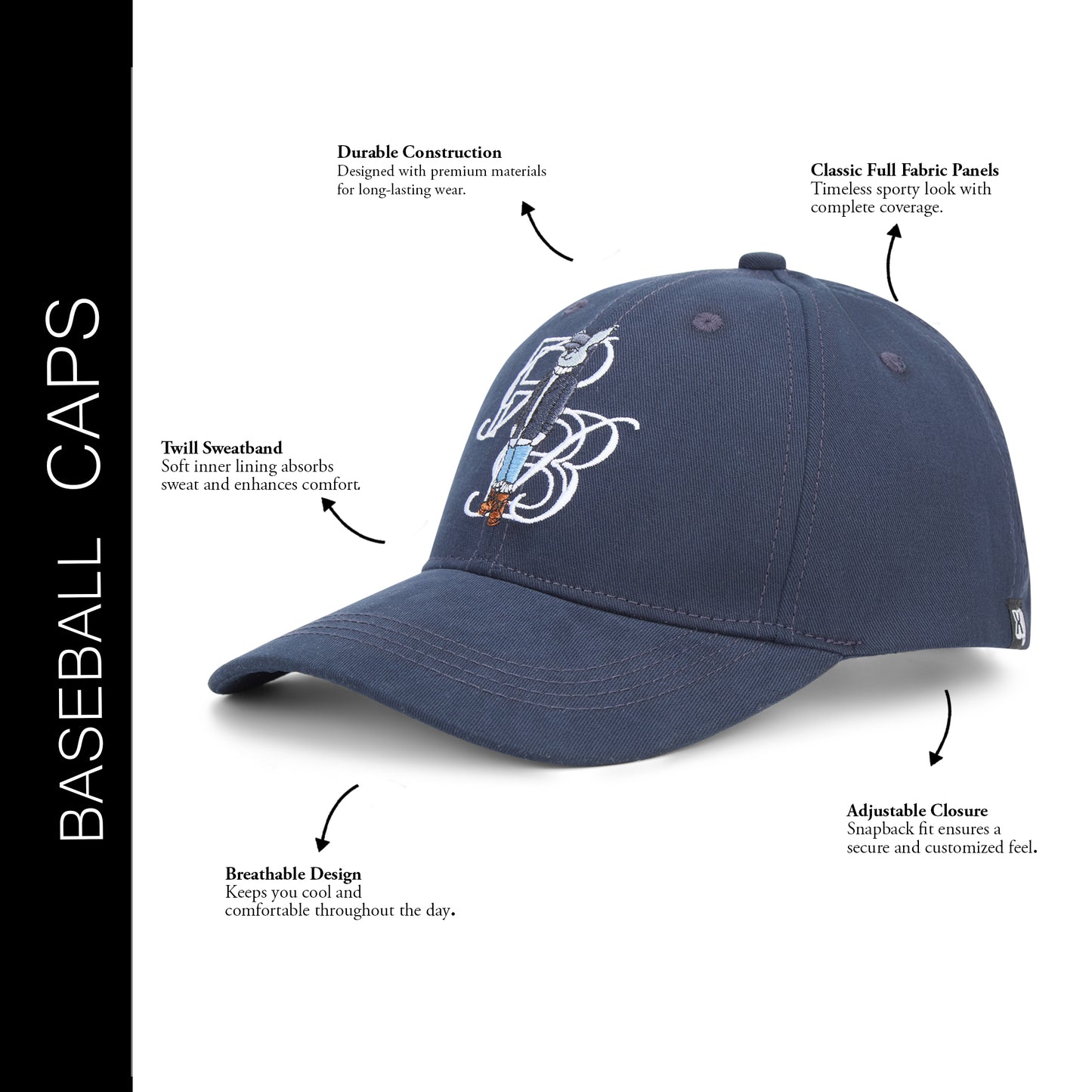 Turn heads with the artistic edge of the officially licensed Playboy Cap by SocksXpress. Set in deep navy with a stylized PB emblem fused with the iconic Playboy Bunny, this cap brings together bold design, sleek embroidery, and modern street-style flair. Built with a structured six-panel design, breathable eyelets, and an adjustable snapback, it’s crafted for comfort and confidence—perfect for anyone who prefers their essentials with a graphic twist. It’s the kind of cap that speaks without trying too hard. Make a statement without saying a word.